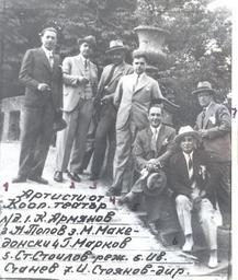 Keywords: BASA-1735K-1-31-3-Co-operative Theatre.jpeg Снимка на а тистите от Коопе ативния театъ Коста А мянов икола Попов атю акедонски Генчо а ков ежисьо а Стоил Стоилов ди игентите Иван Станев и Илия Стоянов 1938 г Kosta Armyanov Nikola Popov Matthew Makedonski Gencho Markov Stoil Stoilov Ivan Stanev and Ilia Stoyanov 1938 1938 author ЦДА 1735K Колекция Снимки от обществено-политическия стопанския и култу ния живот в Бълга ия 1850-1976 1 31 3 credit line exhibition history BASA Спасими <span class signature-talk >talk</span> 2013-03-21 other versions Anonymous-EU ImageNote 1 207 145 178 182 1443 1708 2 Коста А мянов Kosta Armyanov ImageNoteEnd 1 ImageNote 2 445 187 177 192 1443 1708 2 икола Попов Nikola Popov ImageNoteEnd 2 ImageNote 3 634 217 160 193 1443 1708 2 атю акедонски Matthew Makedonski ImageNoteEnd 3 ImageNote 4 796 305 120 177 1443 1708 2 Генчо а ков Gencho Markov ImageNoteEnd 4 ImageNote 5 887 605 127 178 1443 1708 2 Стоил Стоилов Stoil Stoilov ImageNoteEnd 5 ImageNote 6 1051 762 168 208 1443 1708 2 Иван Станев Ivan Stanev ImageNoteEnd 6 ImageNote 7 1143 465 185 200 1443 1708 2 Илия Стоянов Ilia Stoyanov ImageNoteEnd 7 Musical Theatre Stefan Makedonski |