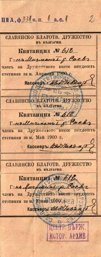 | Keywords: BASA-1951K-1-1-2-Todor Saev.JPG квитанции на Тодо Саев за платен членски внос в Славянското благотво ително д ужество в Бълга ия Todor Saev 1908-06-20 author ЦДА 1951K Тодо Саев 1 1 2 credit line exhibition history BASA Спасими <span class signature-talk >talk</span> 2015-09-28 other versions Anonymous-EU Todor Saev Slavonic Charitable Society |