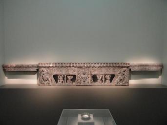 | Keywords: Base of a funerary couch (shichuang) with Sogdian scenes, view 1, Henan province, probably Ce xian, China, Period of Division, Northern Qi dynasty, 550-577 AD, marble with pigment - Freer Gallery of Art - DSC05620.JPG en Exhibit in the Freer Gallery of Art Washington DC USA This artwork is old enough so that it is in the public domain Photography was permitted in the museum without restriction 2013-02-12 16 00 37 own Daderot cc-zero Uploaded with UploadWizard Funerary couch Freer Gallery |