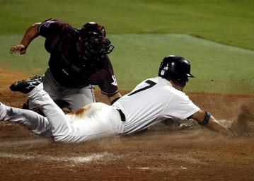 Keywords: baseball catcher out at plate close play dirt athlete competition players college baseball home plate catching ballgame