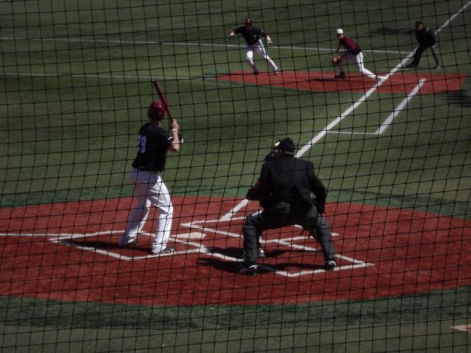 Keywords: baseball sports field plate home park batter-up pitcher stealing infield
