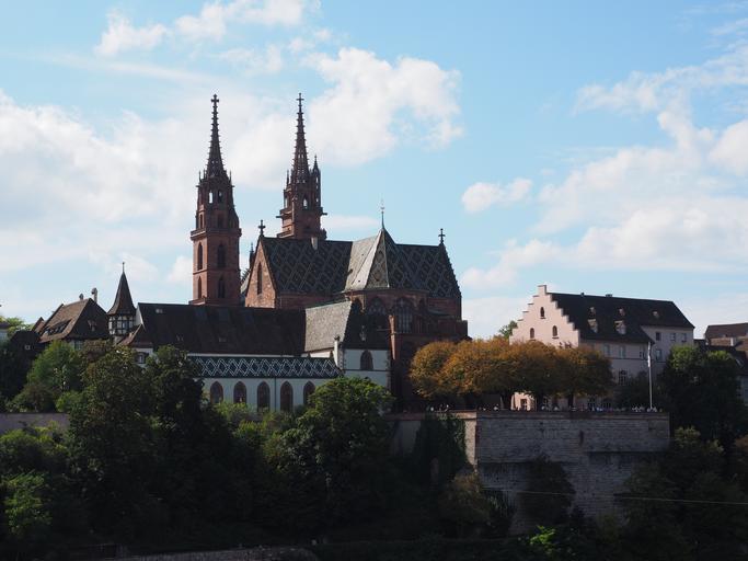 Keywords: basel cathedral münster basel church house of worship main attraction places of interest landmark sand stone building architecture towers church steeples double tower bishop church rhaeto romanic gothic