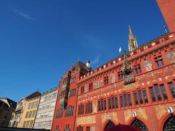 Keywords: basel city hall facade town hall basel building architecture red sand stone representative building basler marketplace turret looking facade exterior