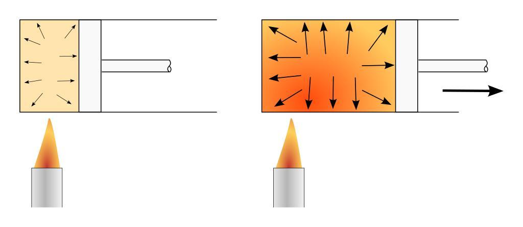 Keywords: Basic heat engine principle.svg en A diagram showing the basic working of a heat engine heat added to a fluid increases its pressure and the expansion may be used to drive a moving part extracting work 2014 own Olivier Cleynen other versions cc-zero SVG physics Uploaded with UploadWizard Thermodynamic diagrams