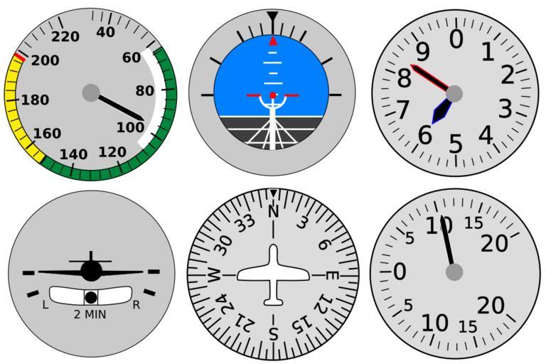 | Keywords: BasicFlight instruments climb.svg Bild 4 climb Standardinstrumenter i fly Flyet stiger og flyr rett fram Øverst fra v Hastighetsmåler viser 90 knop Kunstig horisont viser horisontale vinger og litt høy nese Høydemåler viser 5900 ft Nederst fra v Svingeindikator Gyrokompass og Stigehastighetsmåler som viser stigning Hovedinstrumenter i fly Plasseringen av disse kalles «standard T» og er like for de aller fleste moderne fly Øverst fra v Hastighetsmåler viser 95 knop Kunstig horisont viser horisontale vinger og litt høy nese Høydemåler viser 5850 ft Nederst fra v Svingeindikator flyet svinger ikke Gyrokompass flyet flyr mot nord og Stigehastighetsmåler som viser stigning 1000 fot/minutt Own date Luftpirat Flight instruments SVG aircraft instruments |