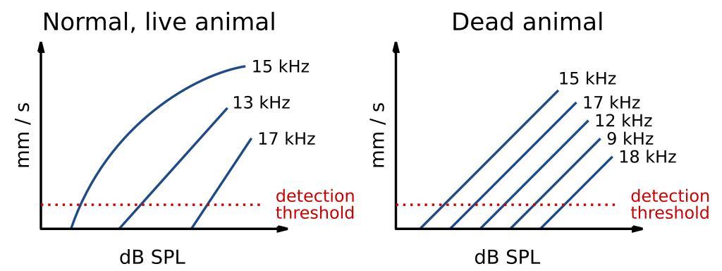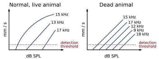 Keywords: Basilar membrane motion.svg en By determining the response of the basilar membrane to various stimuli at a particular location one can derive the tuning curve in both a normal intact cochlea and a dead one Own Inductiveload 2009-02-15 SVG files on otology Sensory Neuroscience Hearing and speech |