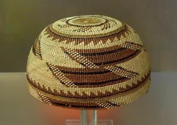 Keywords: Basket skull cap, Yurok, before 1909, pine root, woodwardia fern, beargrass, maidenhair fern - Oakland Museum of California - DSC05072.JPG en Exhibit in the Oakland Museum of California Oakland California USA This work is in the public domain because its maker died more than 70 years ago Photography was permitted in the museum without restriction 2013-11-15 16 37 03 own Daderot other versions cc-zero Native American baskets in the Oakland Museum of California Uploaded with UploadWizard Yurok |