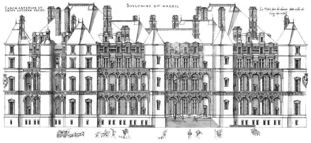 Keywords: Bastiments v1 (Gregg 1972 p35) - Madrid rear facade.jpg Engraving from Le premier volume des plus excellents Bastiments de France by Jacques I Androuet du Cerceau elevation of the rear facade of the Château de Madrid Scan Androuet Jacques 1576 Le premier volume des plus excellents Bastiments de France Paris Reduced size reprint Gregg International 1972 ISBN 9780576154086 1576 Creator Jacques I Androuet du Cerceau PD-Art-100 Le premier volume des plus excellents Bastiments de France Gregg 1972 reprint Château de Madrid Castle elevations |