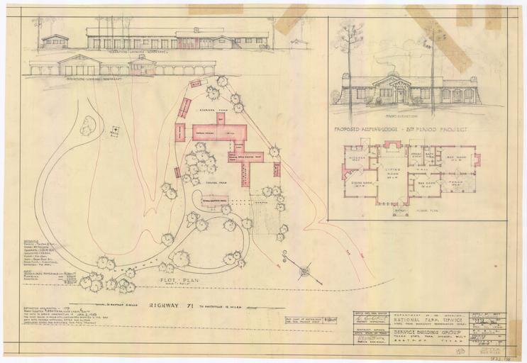 Keywords: bastrop state park bastropstatepark texas state parks texasstateparks civilian conservation corps civilianconservationcorps ccc drawing map sketch document text writing Specific date: 12/21/1934 Pencil, red pouche, red & black ink on tissue; elevations, floor plan, plot plan. LN: 32.625 X HT: 22.25 Specific date: 12/21/1934 Pencil, red pouche, red & black ink on tissue; elevations, floor plan, plot plan. LN: 32.625 X HT: 22.25 |
