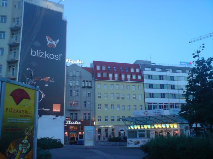 Keywords: Baťa dusk.jpg Baťa building Dunajská street Bratislava Slovakia Own 2008-07-10 Wizzard Own work all rights released Public domain Dunajská Bratislava