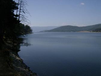 Keywords: Batak Reservoir Iz1.jpg en View of Batak Reservoir from Dam bg Изглед към язови Батак от стената own Izvora Batak Dam