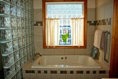 Keywords: bathtub stained glass window pink lady slipper bath bathroom home interior tub clean decor decoration faucet house hygiene luxurious modern pamper room stylish wash design glass indoors tile restroom fashionable relax relaxation grout