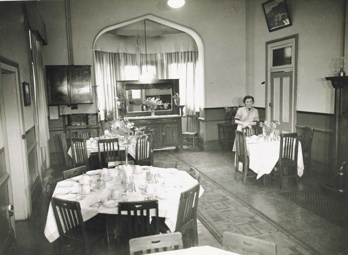 | Keywords: archives state records nsw staterecordsnsw newsouthwales blackandwhite cafe refreshment room refreshmentroom people women waitress tables chairs bathurst central west centralwest station nswgr rrr indoor black and white Bathurst Railway Refreshment Room - dining area Dated: 15/7/1947 Digital ID: 17420_a014_a014000010 Rights: www.records.nsw.gov.au/about-us/rights-and-permissions We'd love to hear from you if you use our photos/documents. Many other photos in our collection are available to view and browse on our website using Photo Investigator. Bathurst Railway Refreshment Room - dining area Dated: 15/7/1947 Digital ID: 17420_a014_a014000010 Rights: www.records.nsw.gov.au/about-us/rights-and-permissions We'd love to hear from you if you use our photos/documents. Many other photos in our collection are available to view and browse on our website using Photo Investigator. |