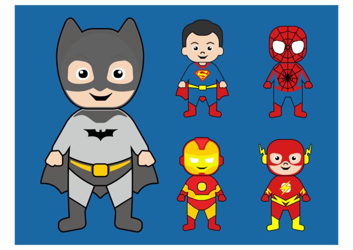 Keywords: batman superman iron man spiderman super hero comic cartoon character child cute free vector free image action hero