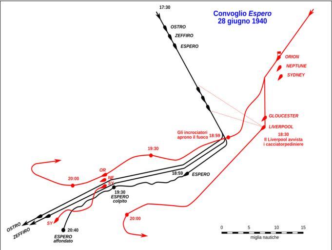 Keywords: Battaglia Convoglio Espero 2.svg Carta approssimativa dello scontro del convoglio Espero - 28 giugno 1940 Map showing positions during the naval Battle of the Espero Convoy southwest of Crete on 28 June 1940 Transferred from http //it wikipedia org it wikipedia; transfered to Commons by User DagosNavy using http //tools wikimedia de/~magnus/commonshelper php CommonsHelper <br/> Original text Prodotto in proprio sulla base di informazioni e schemi tratti da Aldo Cocchia e Filippo De Palma La Marina Italiana nella Seconda Guerra Mondiale Vol VI La Guerra nel Mediterraneo “ La difesa del Traffico coll'Africa Settentrionale dal 10 giugno 1940 al 30 settembre 1941 Roma Ufficio Storico della Marina Militare 1958 2008-06-04 <br/> Original text 04 giugno 2008 Edozio Original uploader was Edozio at http //it wikipedia org it wikipedia Released into the public domain by the author Inkscape it wikipedia Edozio original upload log page it wikipedia Battaglia_Convoglio_Espero_2 svg 2008-06-06 10 03 Edozio 1599×1202×0 59007 bytes <nowiki> Informazioni file Carta approssimativa dello scontro del convoglio Espero - 28 giugno 1940 inkscape Prodotto in proprio sulla base di informazioni e schemi tratti da Aldo Cocchia e Filippo De Palma La Marina Italiana ne</nowiki> 2008-06-04 22 20 Edozio 1599×1202×0 57096 bytes <nowiki> Informazioni file Carta approssimativa dello scontro del convoglio Espero - 28 giugno 1940 inkscape Prodotto in proprio sulla base di informazioni e schemi tratti da Aldo Cocchia e Filippo De Palma La Marina Italiana ne</nowiki> 2008-06-04 22 17 Edozio 1599×1202×0 57096 bytes <nowiki> Informazioni file Carta approssimativa dello scontro del convoglio Espero - 28 giugno 1940 inkscape Prodotto in proprio sulla base di informazioni e schemi tratti da Aldo Cocchia e Filippo De Palma La Marina Italiana ne</nowiki> 2008-06-04 22 11 Edozio 800×579×0 57602 bytes <nowiki> Informazioni file Carta approssimativa dello scontro del convoglio Espero - 28 giugno 1940 inkscape Prodotto in proprio sulla base di informazioni e schemi tratti da Aldo Cocchia e Filippo De Palma La Marina Italiana ne</nowiki> 2008-06-04 22 05 Edozio 800×579×0 94576 bytes <nowiki> Informazioni file Carta approssimativa dello scontro del convoglio Espero - 28 giugno 1940 inkscape Prodotto in proprio sulla base di informazioni e schemi tratti da Aldo Cocchia e Filippo De Palma La Marina Italiana ne</nowiki> Naval battles of World War II World War II on the Mediterranean Sea Regia Marina Royal Navy |