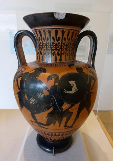 Keywords: Battle scene with three hoplites, neck amphora, attributed to the Leagros Group, c. 510-500 BC, black-figure terracotta - Blanton Museum of Art - Austin, Texas - DSC07642.jpg en Exhibit in the Blanton Museum of Art - Austin Texas USA This work is old enough so that it is in the public domain 2015-11-15 15 16 52 own Daderot other versions PD-old-100 cc-zero Ancient Greek pottery in the Blanton Museum of Art Ancient Greek Neck amphoras Leagros Group |