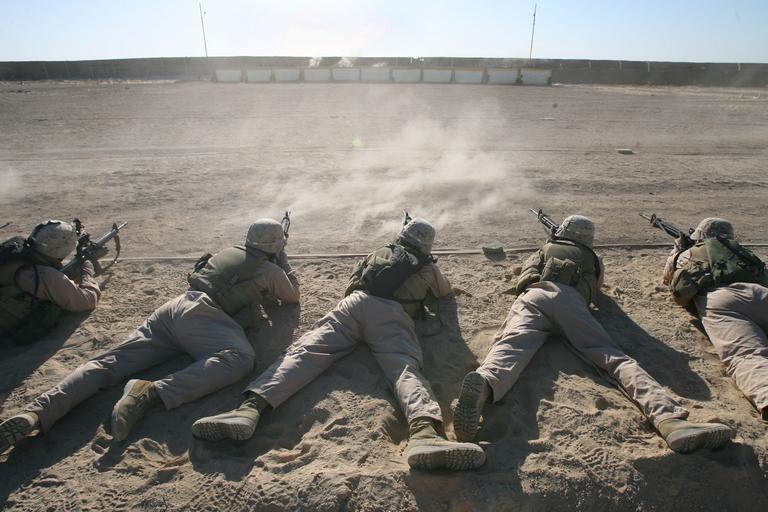 Keywords: Battle-sight zeroes DVIDS23720.jpg en Marines recently assigned to Headquarters Company Regimental Combat Team 5 verify their battle-sight zeroes on their rifles near Camp Fallujah Iraq June 13 Sixteen Marines from 1st Battalion 5th Marine Regiment joined the company to help out with the various security missions with which the company is tasked Most of the Marines are on their second or third tours in Iraq 2006-06-13 Gunnery Sgt Mark Oliva https //www dvidshub net/image/23720 23720 2006-06-20 11 03 FALLUJAH IQ PD-USGov MEK Compound Fallujah Iraq Images from DoD uploaded by Fæ |