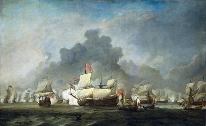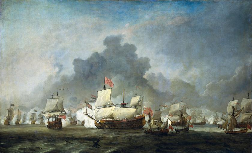 Keywords: Battle of Solebay june 7 1672 - De Ruyter against the Duke of York (Willem van de Velde II, 1691).jpg Willem van de Velde II LangSwitch The skirmish of Michiel Adriaensz de Ruyter against the duke of York commanding the 'Royal Prince'during the Battle of Solebay 7 June 1672 episode from the Third Anglo-Dutch War 1672-1674 Het gevecht van Michiel Adriaensz de Ruyter tegen de hertog van York op de 'Royal Prince' tijdens de zeeslag bij Solebay 7 juni 1672 episode uit de Derde Engelse Zeeoorlog 1672-1674 1691 oil canvas cm 112 182 Rijksmuseum Amsterdam bottom right W vand Velde Int LangSwitch Probably false Waarschijnlijk vals LangSwitch Signed and dated on the reverse Gesigneerd en gedateerd op de achterzijde W v Velde J 1691 Provenance ProvenanceEvent 1897-06-01 sale Tentink-Farret Frederik Muller Cie Amsterdam or 1897 1898-01 purchase Rijksmuseum Amsterdam www geheugenvannederland nl http //www geheugenvannederland nl/ /en/homepage Home http //www geheugenvannederland nl/ /en/items/RIJK01 SK-A-1716 Info http //resolver kb nl/resolve urn urn gvn RIJK01 SK-A-1716 role image size large Pic SK-A-1716 Other versions Background removed colours adjusted PD-old-100 17th-century paintings of naval battles 1672 Paintings by Willem van de Velde II in the Rijksmuseum Amsterdam Battle of Solebay 17th-century sailing ships in paintings 1691 paintings 1690s paintings in the Netherlands |