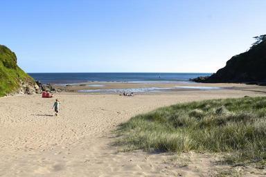 Keywords: bay beach people sand view summer devon coast sun