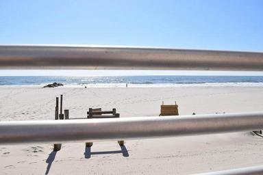 Keywords: beach banister long island sand sky new york ocean blue tranquil