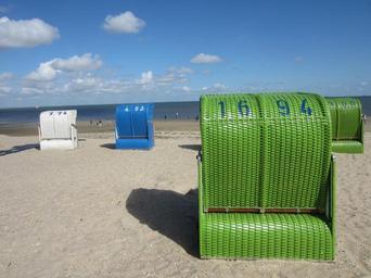 Keywords: beach beach chair blue sky clouds