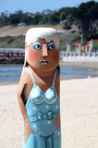 Keywords: beach bollard sea water summer coast ocean travel wooden outdoors australia geelong woman lady female bathers bathing suit holiday sun