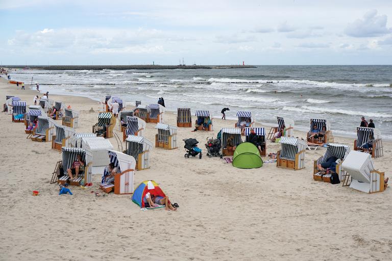 Keywords: beach chair sand beach baltic sea sea sand beach coast relaxation wind protection clouds wave water blue summer relax