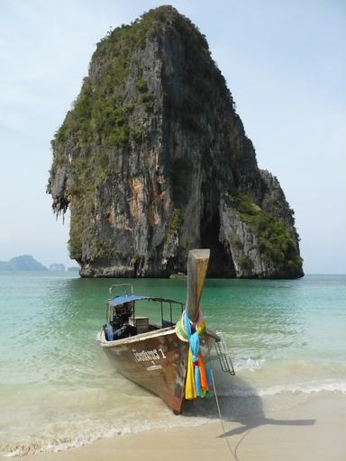 Keywords: beach cliff boat colored ribbons scenic krabi