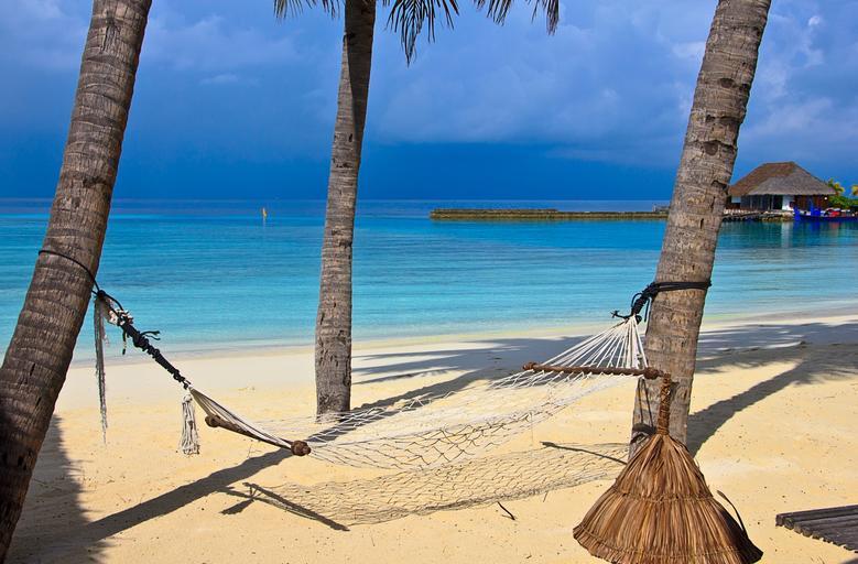 Keywords: beach hammock tropical sea paradise sand palm maldives