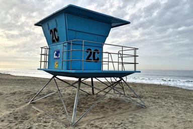 Keywords: beach lifeguard stand ocean sea water sand coastline rescue