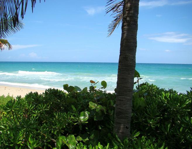 Keywords: beach palm tree leaf water ocean wave breeze sun sunny sky