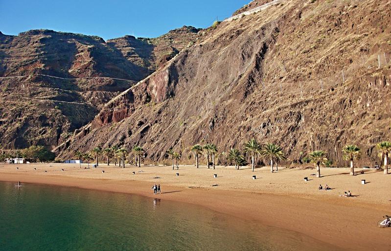 Keywords: beach palm trees tenerife atlantic teresitas santa cruz anagagebirge canary islands island yellow sand beach