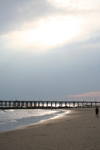 Keywords: beach pier bridge water sunset america evening sky usa sea