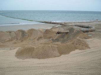 Keywords: Beach restoration device.jpg Beach nourishment device not currently operating in Barcelona Spain own 2006-07-09 Scott Ehardt SCEhardt Coastal management Beaches of Barcelona July 2006 in Barcelona
