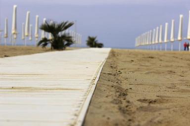 Keywords: beach sand catwalk umbrellas