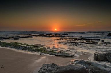Keywords: beach sand sunset sunrise sky horizon dusk dawn waves paradise tropics shore island holiday vacation scenic peaceful water ocean sea