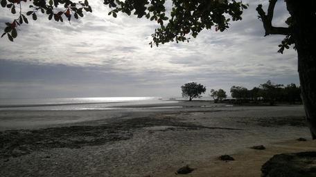 Keywords: beach sandy silhouettes dark trees branches leaves landscape plants flora water dusk dawn mornings evenings nature calm tranquility peaceful