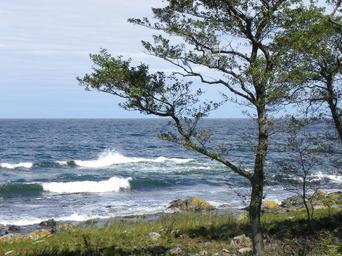 Keywords: beach sea baltic sea coast pebble holiday wave tree water head surf bornholm