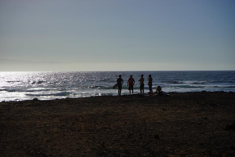 Keywords: beach surfer sea back light playa de las americas tenerife americas canary islands
