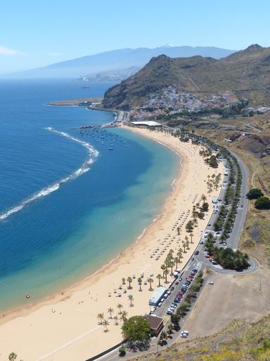 Keywords: beach water sea coast sand beach playa las teresitas tenerife ocean breakwater san andres fishing village santa cruz teide pico del teide tras la arena los moros las teresas
