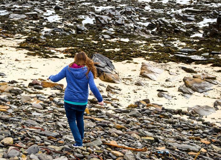 Keywords: beachcomber girl beach sand rocks shoreline female sea person young shore people coast beachcombing coastline walking shell seashell