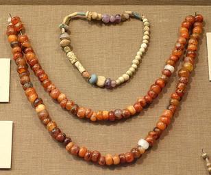 | Keywords: Beads, (above) Nippur, Area TA, Neo-Assyrian period, 900-612 BC, frit, bone, amethyst, agate, (below), Syria, carnelian, rock crystal - Oriental Institute Museum, University of Chicago - DSC07312.JPG en Exhibit in the Oriental Institute Museum University of Chicago Chicago Illinois USA This work is old enough so that it is in the public domain Photography was permitted in the museum without restriction 2014-08-22 15 03 43 own Daderot other versions cc-zero Jewellery of Mesopotamia in the Oriental Institute Museum Neo-Assyrian antiquities in the Oriental Institute Museum Uploaded with UploadWizard |