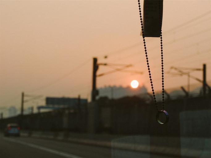 Keywords: beads ring windshield driving road sunset