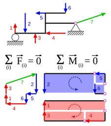 Keywords: Beam in static equilibrium2.svg <br>Beam in static equilibrium The sum of forces and moment are zero Moments clockwise red Moments counterclockwise blue Center of rotation pink <br>Balken mit Fest- und Loslager und einwirkenden Kräften Er erfüllt die Bedingungen der Statik Summe von Kräften und Momenten gleich Null Momente im Uhrzeigersinn rot Momente gegen Uhrzeigersinn blau Drehpunkt pink own Inkscape 2007-07-26 Jahobr Jahobr 60px german bearing style ValidSVG Bearings and beams Created with Inkscape |