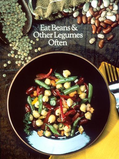 Keywords: Beans and legumes.jpg From an overhead angle a large black bowl of various colored beans and legumes sits in the center of a dark wooden table Next to the bowl are a gold napkin and a fork Behind the bowl are several mounds of different beans The white lettering above the bowl reads Eat beans and other legumes often Shot on 4x5 format This was used in the 1989 calendar Eat for Good Health January 1989 Topics/Categories Food and Drink Type Color Photo Source National Cancer Institute Bill Branson Photographer 2427 1989-01 Reuse Restrictions None - This image is in the public domain and can be freely reused Please credit the source and/or author listed above Bill Branson Photographer PD-USGov-HHS-NIH Media from National Cancer Institute Visuals Online Images uploaded by Fæ Beans Legumes