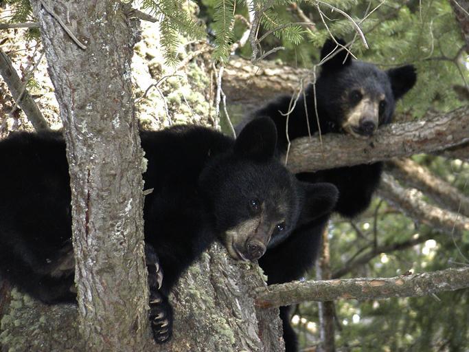 Keywords: bear cubs animal black tree branch canada british columbia cariboo canim lake wild life