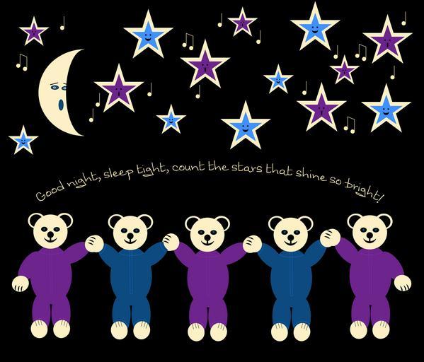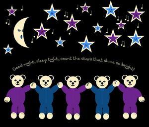 Keywords: bear teddy night moon star good night sleep tight purple blue black white sing child happy bedtime twinkle paw toy