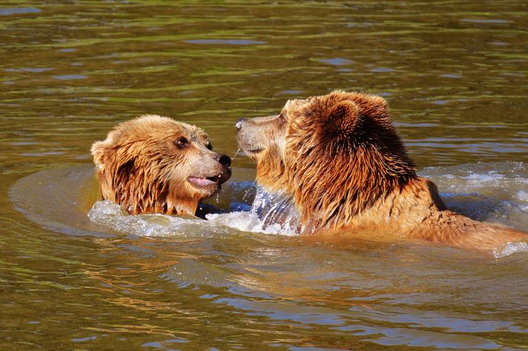 Keywords: bear wildpark poing play water brown bear wild animal dangerous fur nature forest animal animal world wildlife park