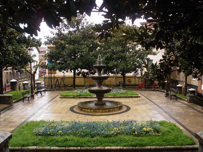 Keywords: beasain spain fountain courtyard benches trees nature outside urban cities city architecture grass