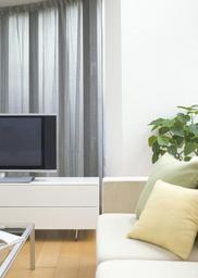 Keywords: interior room design living home sofa modern curtain wall white green hotel apartment window indoors cushions classical classic stylish light minimalist pillows relaxation comfortable comfort vase flower floor style